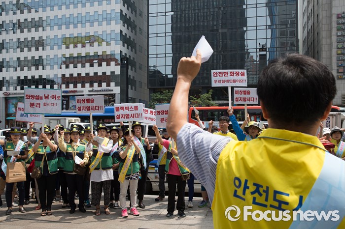 (서울=포커스뉴스) 15일 오전 서울 강남구 강남역인근에서 안전문화운동 실천협의회, 여성 민방대원들이 여성 안전 대책을 촉구하며 캠페인을 벌이고 있다.