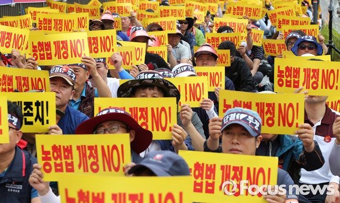 (세종=포커스뉴스) NH농협중앙회노동조합 구성원들이 15일 오전 세종시 정부세종청사 농림축산식품부 앞에서 농협법 개정안 반대 투쟁 선포식을 열고 농협법 개정반대를 촉구하고 있다.