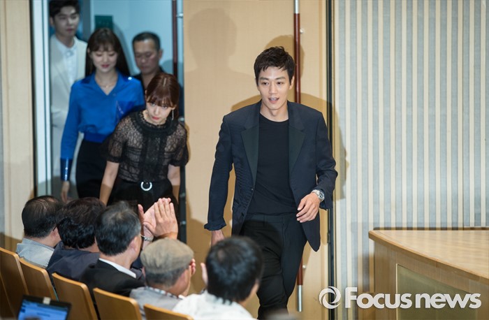 (서울=포커스뉴스) 15일 오후 서울 양천구 SBS목동사옥에서 열린 SBS 월화드라마 '닥터스' 제작발표회에 참석한 출연진이 이동하고 있다.