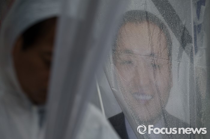 | △ 비오는 날 현대차 본사 앞에 도착한 고 한광호씨의 영정 |