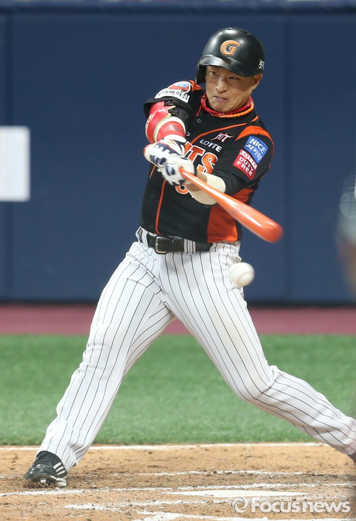 (서울=포커스뉴스) 15일 서울 고척 스카이돔 구장에서 열린 2016 프로야구 롯데-넥센 경기 4회초 1사 2루에서 롯데 손아섭이 좌익수 인쪽으로 빠지는 2루타를 날리고 있다.