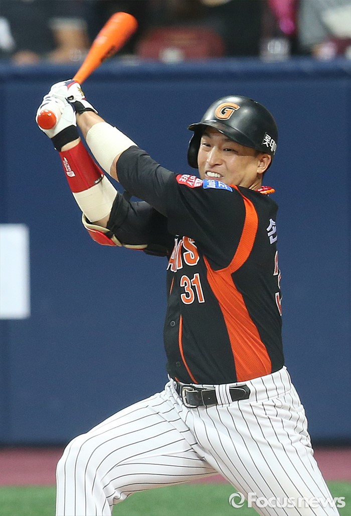 (서울=포커스뉴스) 15일 서울 고척 스카이돔 구장에서 열린 2016 프로야구 롯데-넥센 경기 4회초 1사 2루에서 롯데 손아섭이 좌익수 인쪽으로 빠지는 2루타를 날리고 있다.