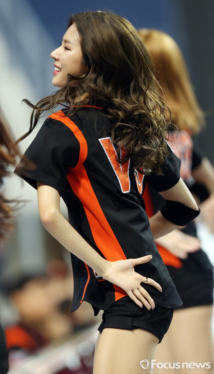 (서울=포커스뉴스) 15일 서울 고척 스카이돔 구장에서 열린 2016 프로야구 롯데-넥센 경기에서 롯데 치어리더 박기량이 승리를 부르는 응원을 하고 있다.