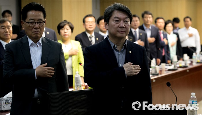 | △ 국민의례하는 안철수-박지원 |