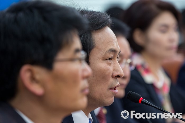 (서울=포커스뉴스) 우상호 더불어민주당 원내대표가 16일 오전 서울 여의도 국회에서 열린 정책조정회의에 참석해 모두발언 하고 있다.
