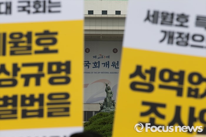 이 매체는 무리한 출항의 원인이 제주해군기지 공사의 자재 수급과 연관된 것은 아닌지 조사가 필요하다고 지적했다.지난 8일 오전 서울 여의도 국회 앞에서 4.16가족협의회와 4.16연대 관계자들이 세월호 진상규명 특별법 개정 입법청원 기자회견을 하고 있다. 2016.06.08 오장환 기자