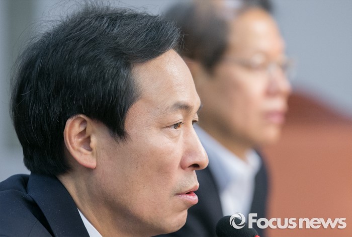(서울=포커스뉴스) 16일 오전 서울 여의도 국회 의원회관에서 열린 남북경제협력사업 중단에 따른 손실보상에 관한 특별법안 토론회에 참석한 우상호 더불어민주당 원내대표가 축사를 하고 있다.