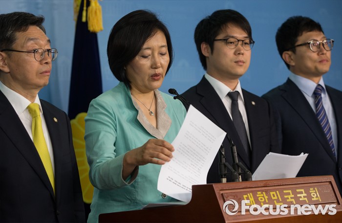 (서울=포커스뉴스) 16일 오전 서울 여의도 국회 정론관에서 박영선 더불어민주당 의원이 가습기 살균제 피해와 같은 대기업의 반사회적 불법행위를 막기 위한 '징벌적 배상법' 제정안 발의에 대한 기자회견을 하고 있다.