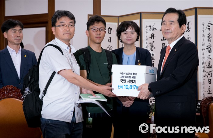 | △ 가습기 살균제 참사 재발 방지 서명지 받는 정세균 의장 |