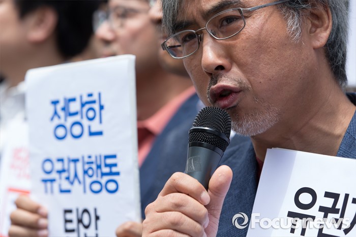 (서울=포커스뉴스) 16일 오전 서울 종로구 참여연대 앞에서 2016총선시민네트워크와 참여연대가 시민단체 압수수색을 규탄하는 기자회견을 하고 있다.