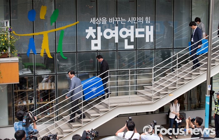 (서울=포커스뉴스) 공직선거법 위반 혐의를 수사하고 있는 경찰이 16일 오후 서울 종로구 참여연대 압수수색을 마치고 차량으로 압수품을 옮기고 있다.