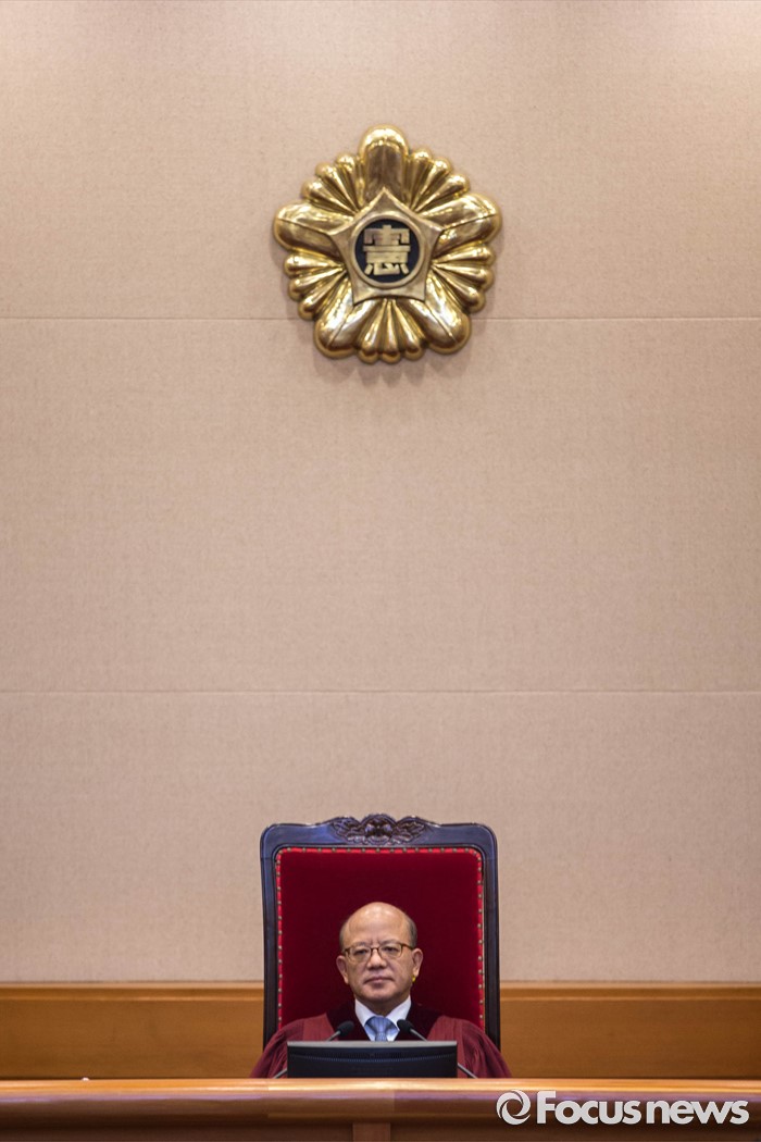 (서울=포커스뉴스) 16일 오후 서울 종로구 헌법재판소 대심판정에서 박한철 헌법재판소장이 공공기관에 개인정보 요구 형사소송법 제199조 제2항 등 헌법소헌의 공개 변론을 위해 자리해 있다.