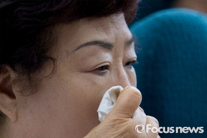 (서울=포커스뉴스) 16일 오후 서울 여의도 국회도서관에서 열린 김근태기념치유센터 개소 3주년 2016 국제 고문피해자 지원의 날 행사에서 한 참석자가 고문피해자들의 내러티브 연극 '진실을 외쳐라'를 관람하며 슬픔에 잠겨 있다.