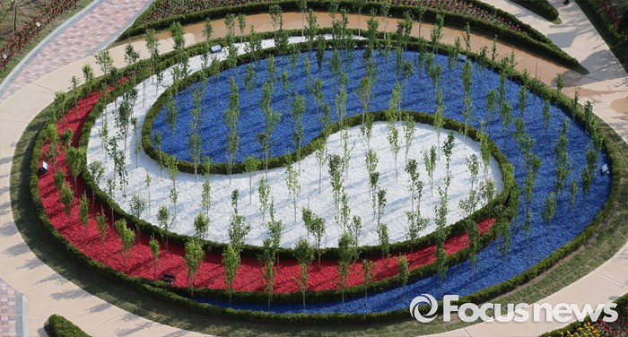 (세종=포커스뉴스) 16일 오후 세종시 정부세종청사 우정사업본부 인근에 '나라꽃동산' 개장식이 열렸다. 니라꽃동산은 정부상징문양인 삼색 태극문양으로 조성됐다.
