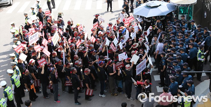 (세종=포커스뉴스) 16일 오후 세종시 정부세종청사 국가보훈처 앞에서 6.25 전몰군경미수당비대위 구성원들이 예산확보를 요구하는 집회를 하고 있다.