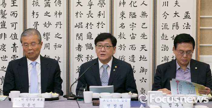 (서울=포커스뉴스) 17일 오전 서울 여의도 국회 귀빈식당에서 열린 국회 저출산극복 연구포럼 1차 회의에 참석한 정진엽(가운데) 보건복지부 장관이 인사말을 하고 있다.