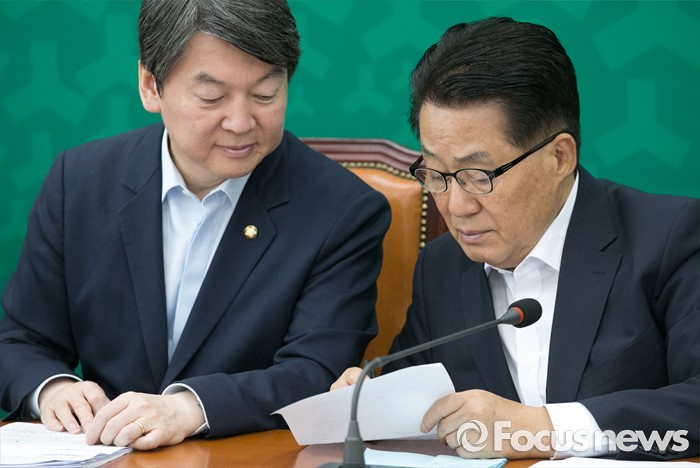 (서울=포커스뉴스) 17일 오전 서울 여의도 국회에서 열린 국민의당 최고위원회의에 안철수(왼쪽) 상임공동대표, 박지원 원내대표가 대화하고 있다.