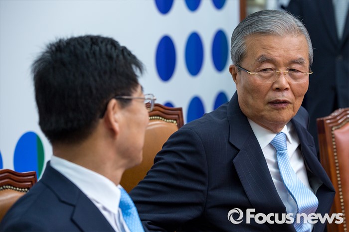 (서울=포커스뉴스) 김종인(오른쪽) 더불어민주당 비상대책위 대표와 양승조 국회 보건복지위원회 위원장이 17일 오전 서울 여의도 국회에서 열린 비상대책위원회의에 참석해 대화를 나누고 있다.