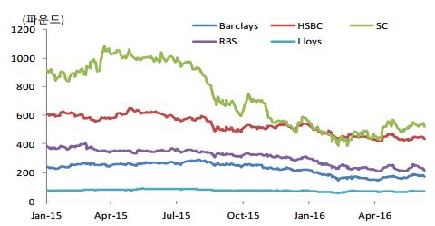 또 브렉시트 리스크가 현실화될 경우 영국 5대 대형은행에 타격을 줄 수 있다는 분석이다. 영국 5대 대형은행은 HSBC, 바클레이즈(Barclays), 스탠다드차타드(SC), RBS, 로이드(Lloyds) 은행 등이다.