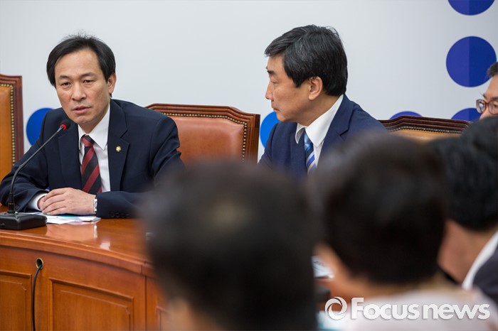 (서울=포커스뉴스) 우상호 더불어민주당 원내대표가 17일 오전 서울 여의도 국회에서 열린 비상대책위원회의에 참석해 모두발언 하고 있다.