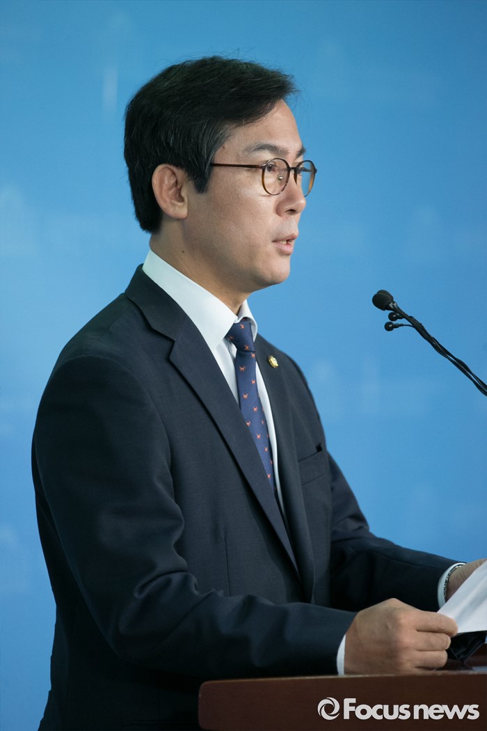 (서울=포커스뉴스) 김영우 새누리당 혁신비대위원이 17일 오전 서울 여의도 국회 정론관에서 전날 비대위 회의에서 논의된 탈당파 의원 일괄복당 결정과 관련 브리핑을 하고 있다.