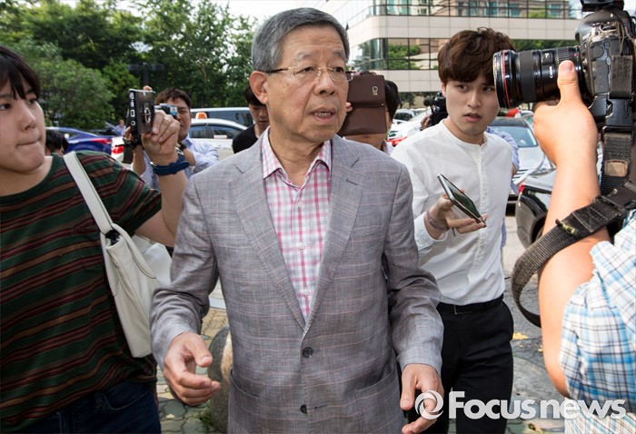 (서울=포커스뉴스) 칩거 중으로 알려진 김희옥 새누리당 혁신비상대책위원장이 17일 오후 서울 논현동의 자택으로 향하며 취재진의 질문에 답하고 있다.