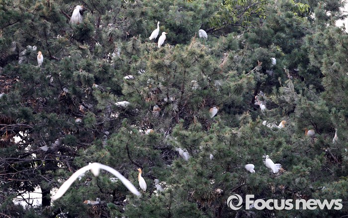 (청주=포커스뉴스) 17일 오후 충북 청주시 서원대학교 야산에 백로 수 백마리가 둥지를 틀고 있다.