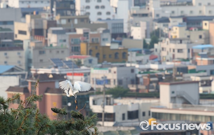 (청주=포커스뉴스) 17일 오후 충북 청주시 서원대학교 야산에 백로 수 백마리가 둥지를 틀고 있다.