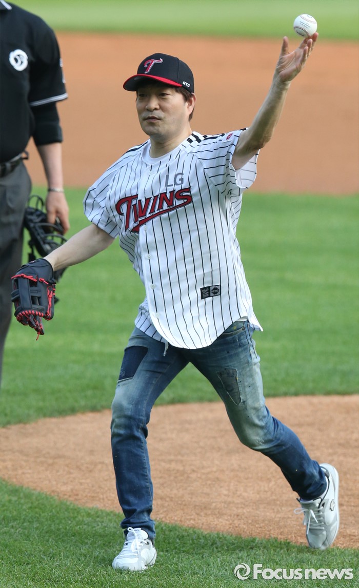 (서울=포커스뉴스) 17일 서울 잠실구장에서 열린 2016 프로야구 KIA-LG 경기에 앞서 배우 손현주가 시구하고 있다.