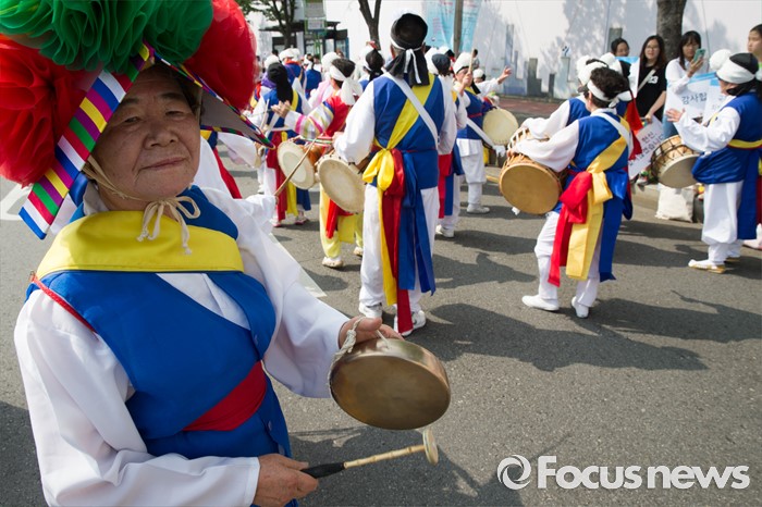 | △ '꽹과리 치며 행진' |