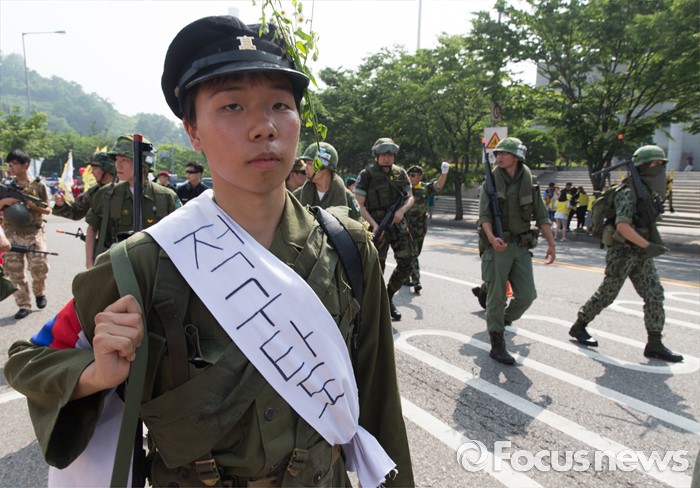 (서울=포커스뉴스) 18일 오후 서울 마포구 평화의 공원에서 열린 '호국보훈 땡큐퍼레이드'에 참가한 코스프레를 사랑하는 모임 회원들이 행진하고 있다.