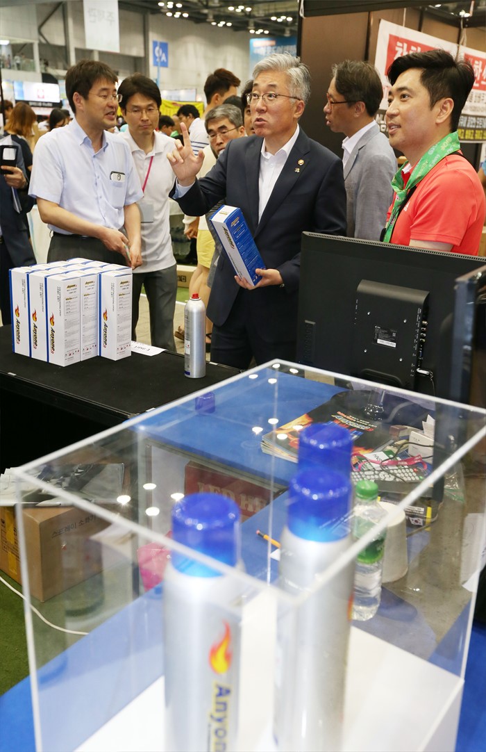 캠핑용품 전시관 둘러보는 김종덕 장관