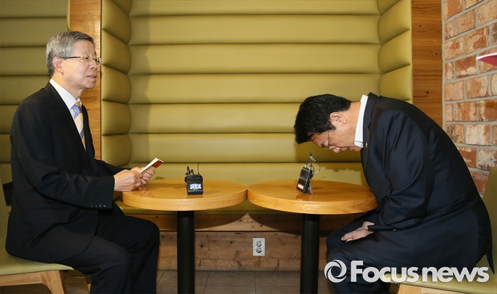 한편, 정진석 원내대표에게 사과를 받은 직후 김희옥 위원장은 기자들과 만나 "사과의 진정성이 있다면 수용을 하겠지만 그 외의 사안들은 좀 더 고심하고 고민하겠다"고 직접 입장을 밝혔다.김희옥 새누리당 혁신비상대책위원장과 정진석 원내대표가 19일 오전 서울 강남구 논현동 한 카페에서 비상대책위원회 정상화를 위한 회동을 하고 있다. 이번 회동은 지난 16일 탈당 무소속 의원들의 일괄복당을 결정한 혁신비대위 회의 과정에 불만을 제기하고 김 위원장이 칩거에 들어간지 나흘째 전격적으로 이뤄진 회동이다. 2016.06.19 강진형 기자