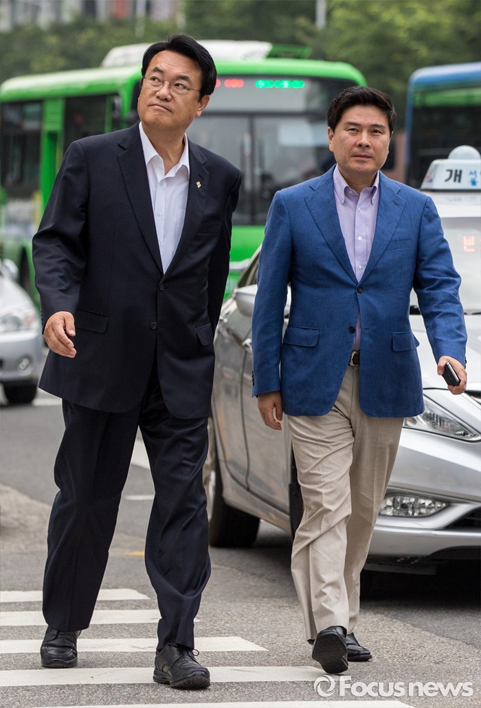 (서울=포커스뉴스) 정진석 새누리당 원내대표가 김희옥 혁신비상대책위원장과 회동을 하기 위해 19일 오전 서울 강남구 논현동 한 커피숍으로 들어서고 있다.
