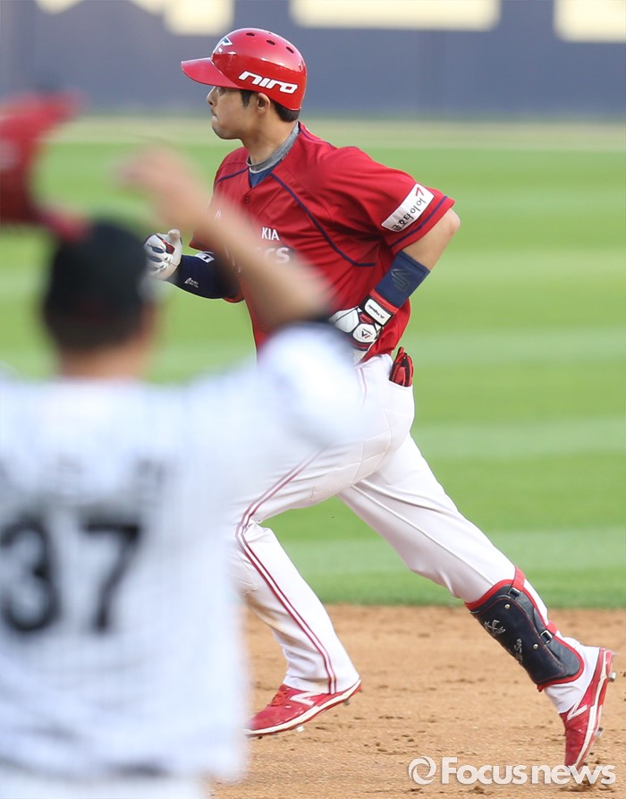 (서울=포커스뉴스) 19일 서울 잠실구장에서 열린 2016 프로야구 KIA-LG 경기 6회초 2사후 KIA 서동욱이 우중월 만루 홈런을 치고 베이스를 돌고 있다.