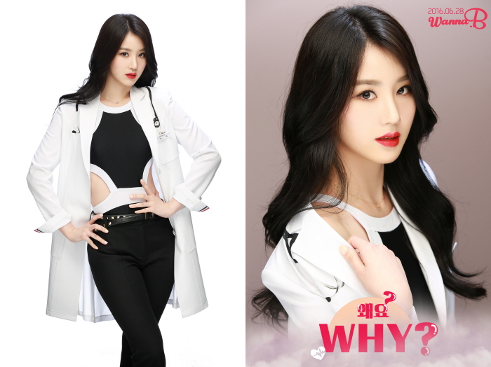 이날 공개된 티저 이미지 속 워너비 멤버 아미는 청진기를 걸친 의사 가운을 입고 빨간 입술에 포인트를 준 당당한 포즈로 세련미를 발산했다.