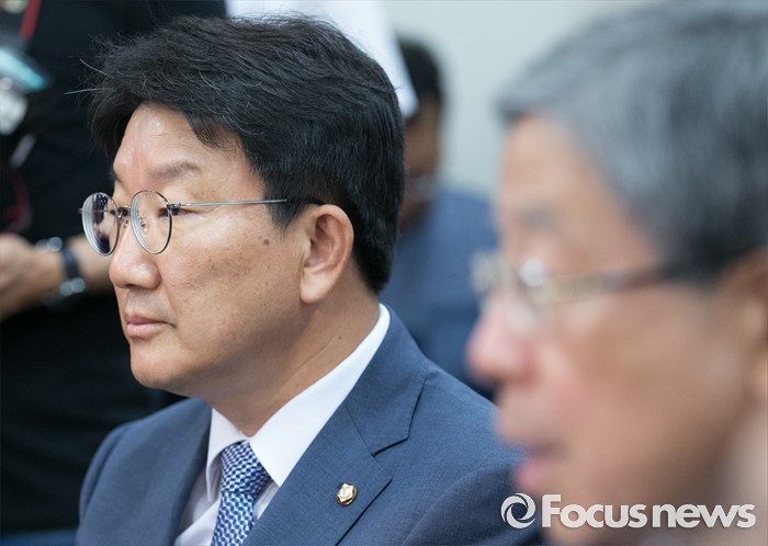 | △ 김희옥 발언 듣는 권성동 사무총장 |