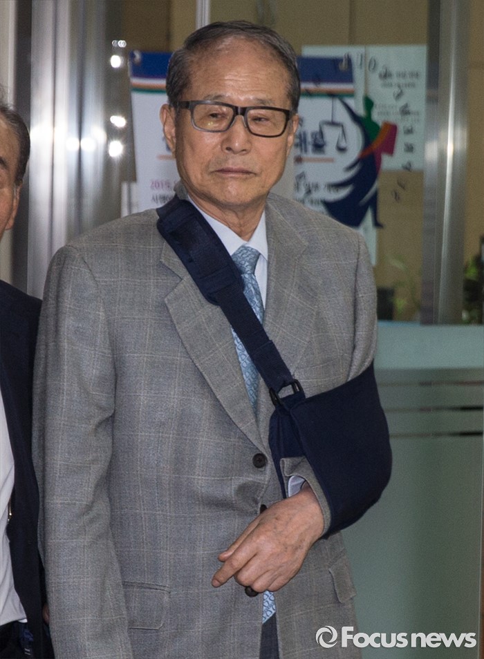 (서울=포커스뉴스) 20일 오전 서울 서초구 서울중앙지방법원에서 포스코 비리에 연루된 혐의를 받고 있는 이상득 전 의원이 2차공판에 출석하고 있다.