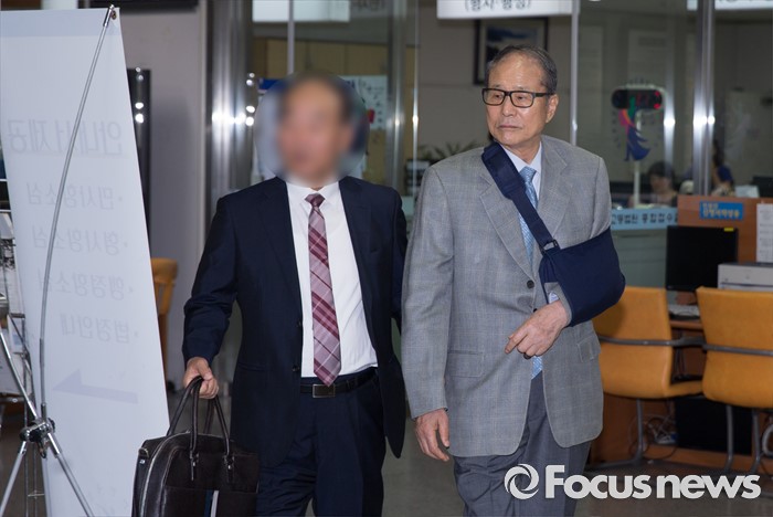 (서울=포커스뉴스) 20일 오전 서울 서초구 서울중앙지방법원에서 포스코 비리에 연루된 혐의를 받고 있는 이상득 전 의원이 2차공판에 출석하고 있다.