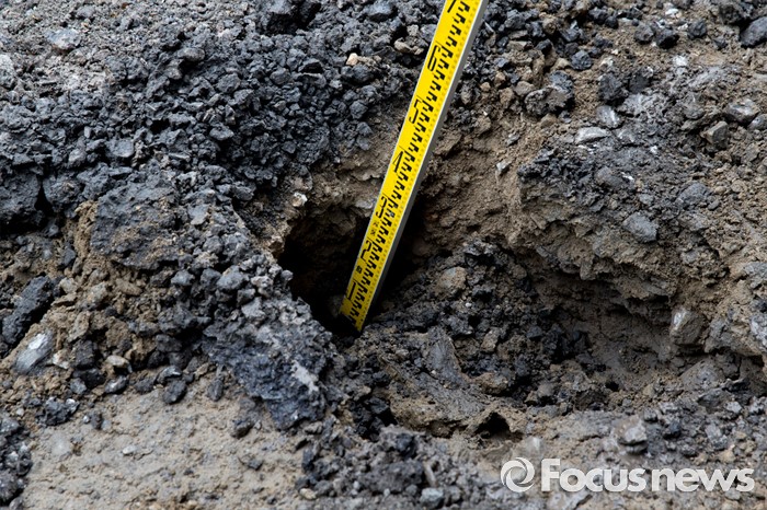 (서울=포커스뉴스) 박원순 서울시장이 20일 오전 서울역 인근 도로에서 동공 굴착 원인조사 및 복구과정을 점검하고 있다.