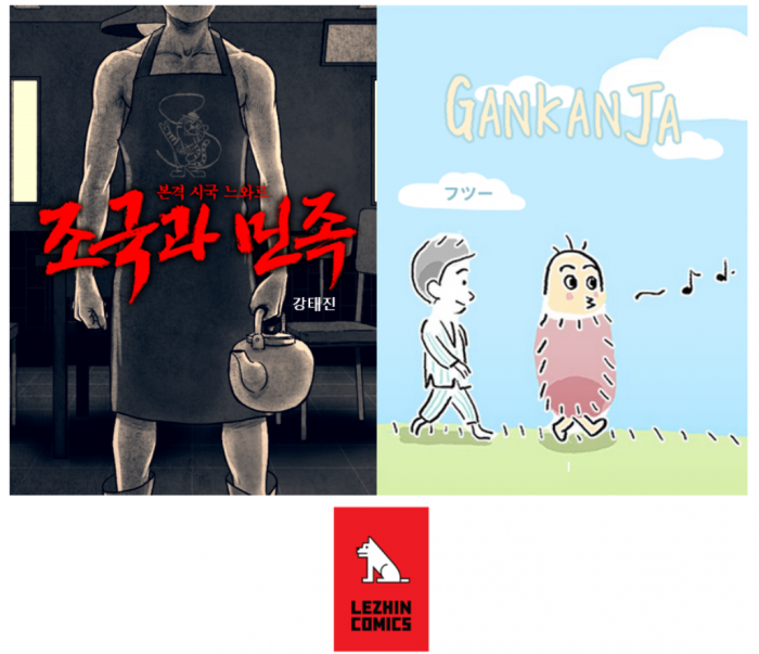이번 책 발간은 일본 대형출판사들의 제안으로 이루어진 것으로 레진은 이 중 지명도가 높고 해당 서적 유통에 경쟁력이 있는 '카도카와'와 계약을 맺었다.웹툰 '조국과 민족'과 '아만자' 표지.<사진제공=레진엔터테인먼트>