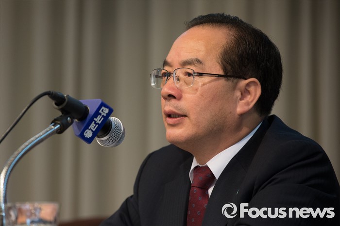 (서울=포커스뉴스) 20일 오전 서울 서초구 한국교원단체총연합회에서 열린 제36대 한국교총 회장선거에 선출된 하윤수 부산교대 총장이 인사말을 하고 있다.