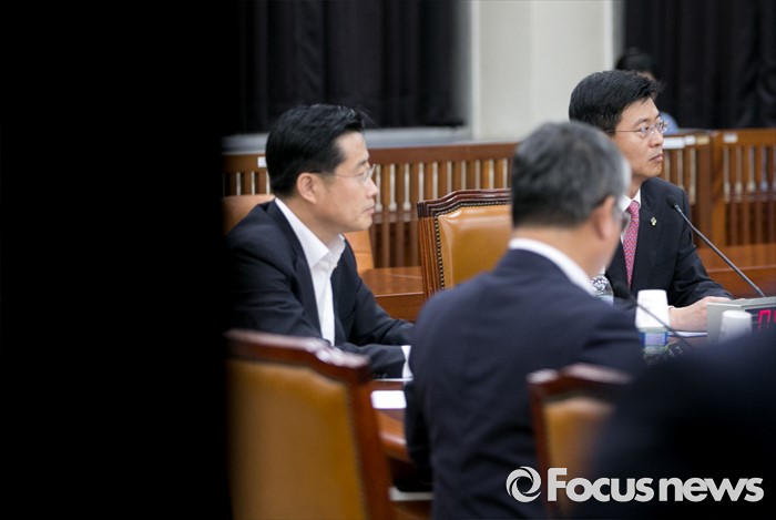 (서울=포커스뉴스) 20일 오후 서울 여의도 국회에서 열린 정보위원회 전체회의에 참석한 최윤수 국가정보원 2차장이 현황 보고를 하고 있다. 왼쪽부터 이태규 국민의당 의원, 조응천 더불어민주당 의원, 최 2차장.