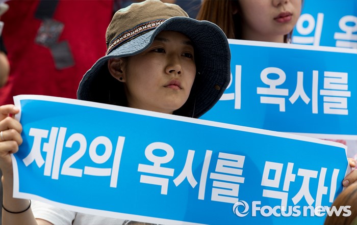 (서울=포커스뉴스) 20일 오후 서울 종로구 세종문화회관 앞 계단에서 환경운동연합과 시민사회단체들이 가습기 살균제 참사 전국네트워크 출범 기자회견을 하고 있다.
