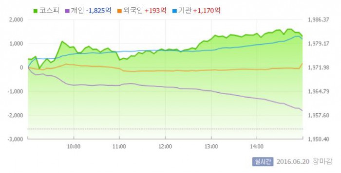 (서울=포커스뉴스) 코스피가 브렉시트(영국의 유럽연합 탈퇴) 우려감 완화에 1980선을 회복했다.
