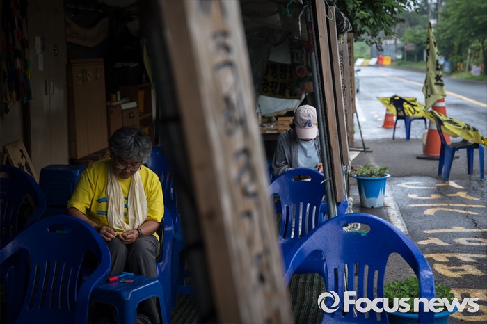 (제주=포커스뉴스) 서귀포시가 제주해군기지 크루즈터미널 조성공사를 이유로 해군기지 건설 반대운동에 사용해 온 망루 등 시설물들을 자진 철거하라는 3차 계고장을 강정마을회에 보내 행정대집행이 예고되고 있다. 20일 오전 제주 서귀포시 강정마을에서 해군기지 건설을 반대하는 활동가들이 미사 준비를 하고 있다. 이날 행정대집행 문제로 회의를 한 강정마을회는 "이들 시설물은 기지 건설 반대 투쟁에 대한 상징적인 것으로 함부로 철거할 수 없다고 마을 주민의 의견을 모았다"며 시설물을 이전한 뒤 보존해달라'고 제주도에 건의했다.