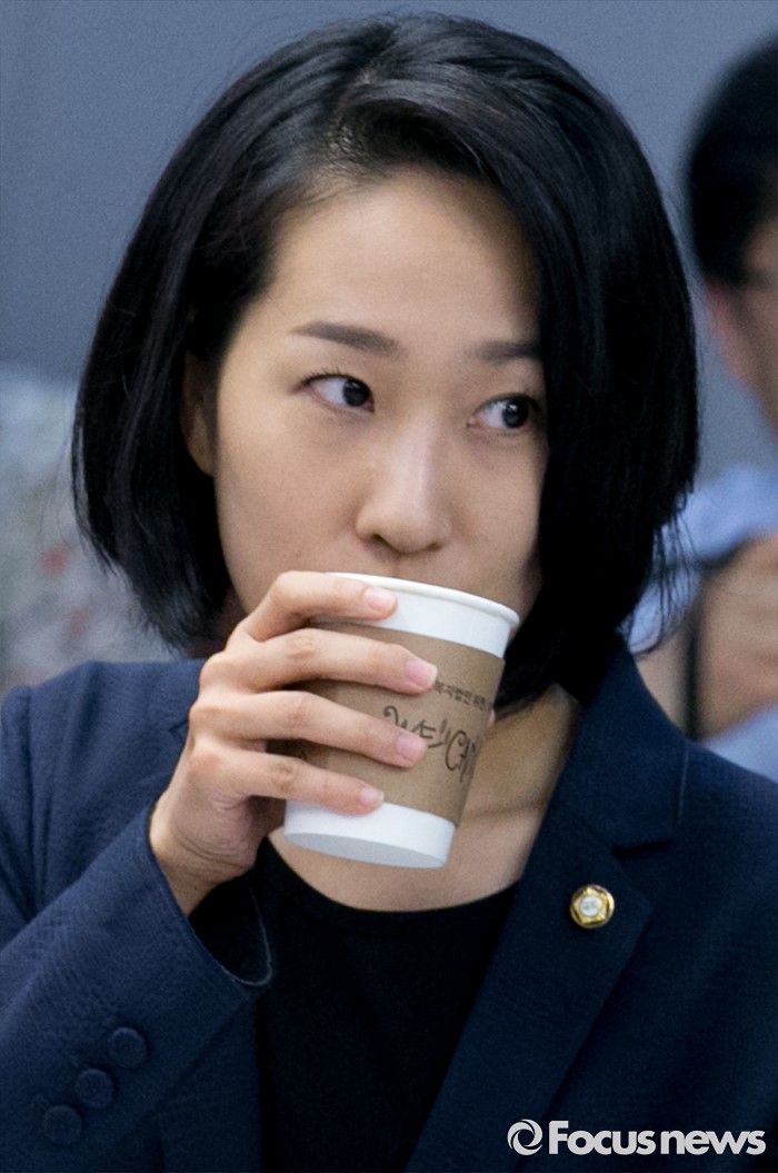 (서울=포커스뉴스) 21일 오전 서울 여의도 국회 의원회관에서 열린 국민의당 17차 정책역량강화 워크숍에 참석한 김수민 의원이 음료를 마시고 있다.