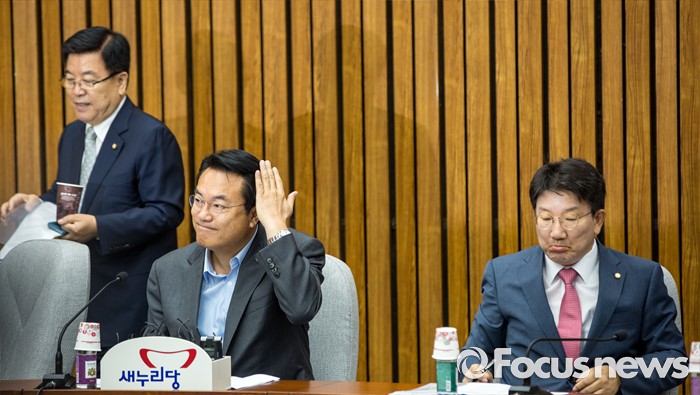 (서울=포커스뉴스) 정진석 새누리당 원내대표와 권성동 사무총장이 21일 오전 서울 여의도 국회에서 열린 원내대책회의에 참석하고 있다.