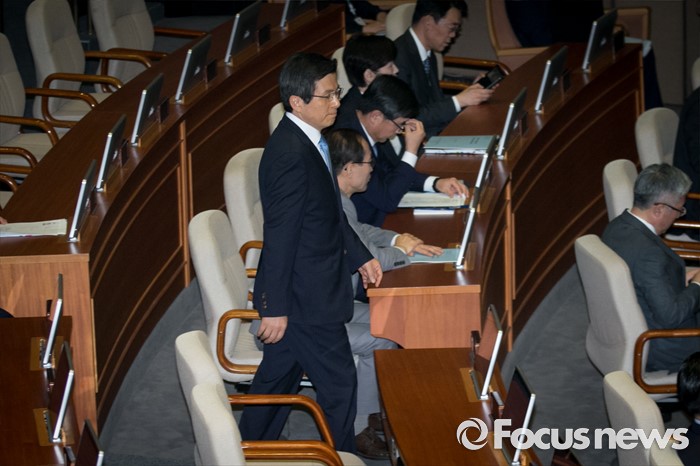 (서울=포커스뉴스) 21일 오전 서울 여의도 국회에서 열린 343회 국회(임시회) 4차 본회의에 황교안 국무총리가 참석하고 있다.