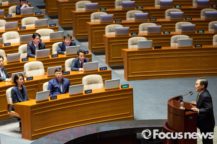 (서울=포커스뉴스) 우윤근 국회 사무총장이 21일 오전 서울 여의도 국회에서 열린 본회의에 참석해 선출 소감을 발표하고 있다.